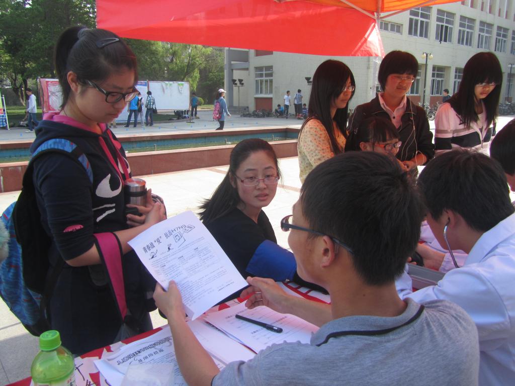 中午,志愿者们迎着高温将展板、宣传单、测量器材、喷绘等分配到各个活动点,他们挥洒汗水为活动做好准备工作。此次活动共有四个活动宣传点,漫画柜 三个校区本部、北区、西区和龙湖公园,宣传对象是学生和社会群体。午饭过后,疾控中心的几位专业人士到达活动地点,活动正式开始。