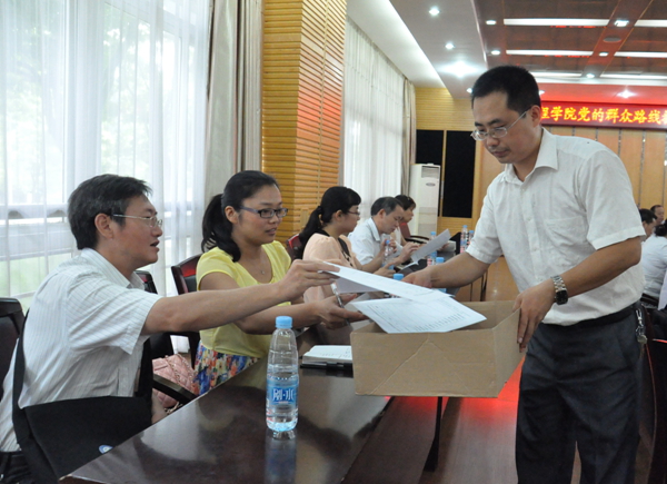 动员大会上,参会人员对学院党委领导班子主要成员作风建设情况进行民主测评。