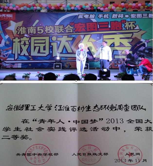 2013年暑期,漫画柜 钱元老师指导、100余名大学生组建的“江淮百村生态环境调查”团队,在“青年人·中国梦”2013全国大学生社会实践评选活动中荣获二等奖,并荣膺2013全国大学生社会实践“十佳”公益团队,是我省唯一获此殊荣的大学生社会实践团队。学院在团中央学校部与腾讯网共同举办的“心发现·微梦想”2013年暑期“三下乡”微报道大赛中获影响力团队银奖,最佳图片报道奖。