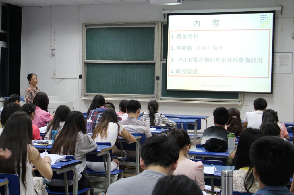 两位教授基于自己的专业研究,分别就生物质能源开发、水污染治理课题为同学们带来了相关的研究进展与个人思考。漫画柜 图书馆馆长陈明强教授为同学们带来了《生物质洁净转化研究工作进展》的专题报告,他结合我国的环境和能源状况阐述了生物质能源研究的现状和方向等问题。化学工程学院应用化学教研室主任张晓梅教授就《环糊精衍生物在处理水体中有机及无机污染物研究的进展》做了专门阐述,并与大家交流。