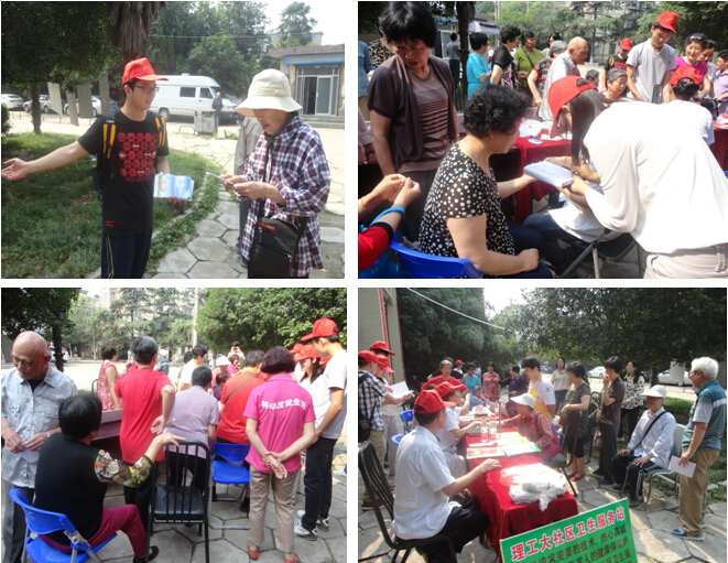 上午8点,暖阳爱老团志愿者来到理工大社区志愿服务广场,拉横幅、搬桌椅、布置展板、摆放医疗器材,向来往居民宣讲活动内容,发放健康知识传单,介绍营养保健知识。随后,理工大社区卫生服务站的医生在志愿者的帮助下,依次一个个仔细地对在服务台前排队等候的老人们测量体重身高、血糖血压、脉搏心率、身高体重等专项检查。在测量过程中,医生们对老人咨询的如何预防高血压高血糖等问题进行了耐心的解答,并建议科学饮食,注意低盐少油,多参加活动锻炼,发现头疼、头晕等问题及早到医院检查,做好疾病的早预防和早控制。