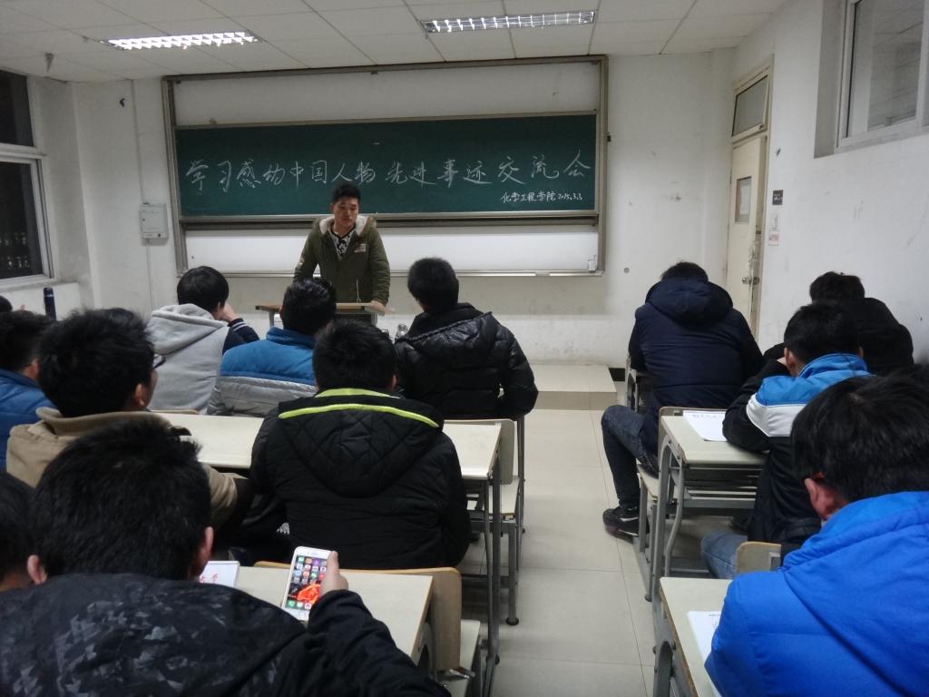 新学期新起点,为增强大学生的社会责任感,以榜样的力量激发大学生励志自强,深入贯彻社会主义核心价值体系教育,3月4日晚,化学工程学院在北区3505教室举办 “感动中国人物”先进事迹学习交流会。