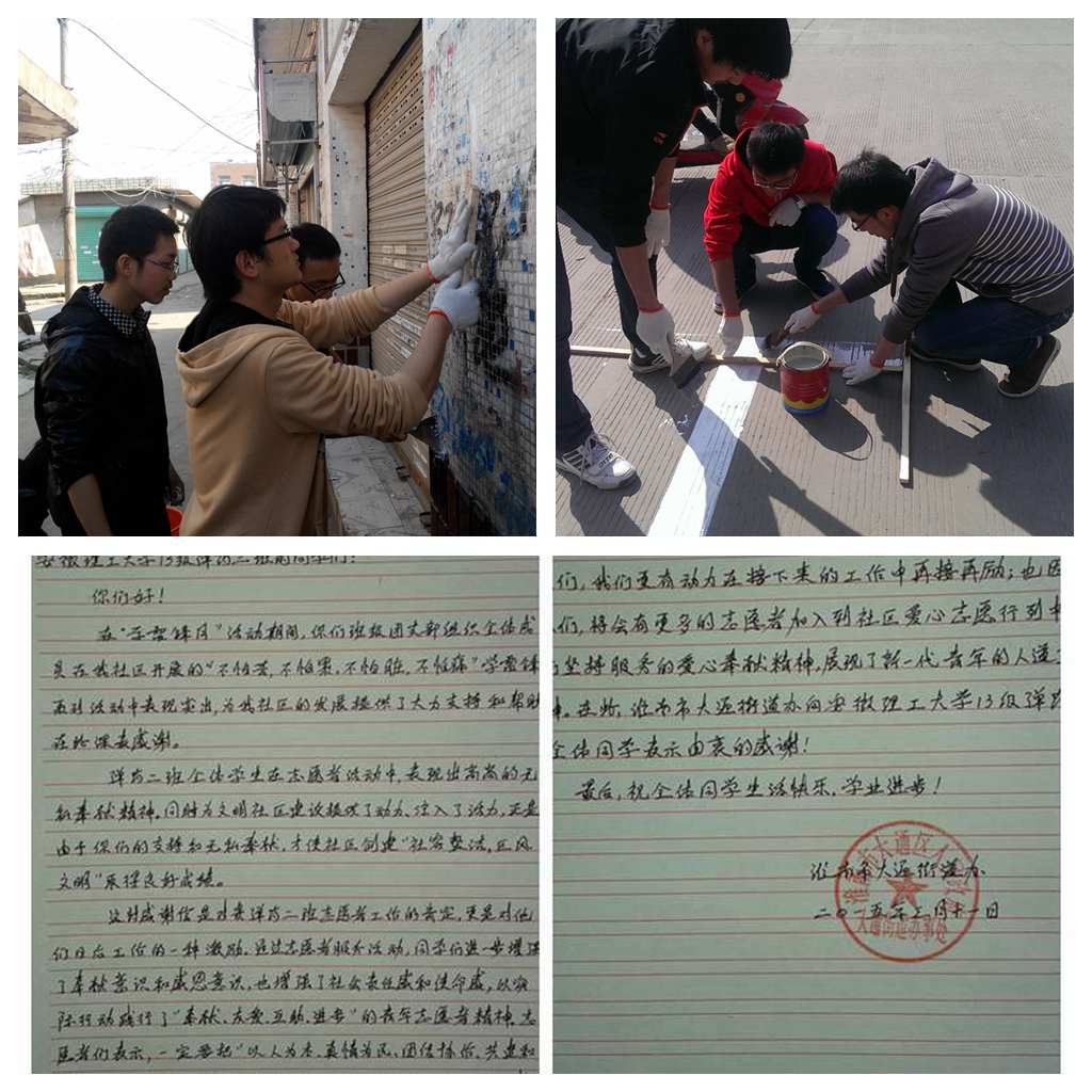 为弘扬雷锋精神,倡导社会文明新风,激引导青年学生践行社会主义核心价值观,3月10日,化学工程学院志愿者来到淮南市大通区大通街道办事处,在周边社区开展了“清洁家园,践行核心价值观”学雷锋系列活动。