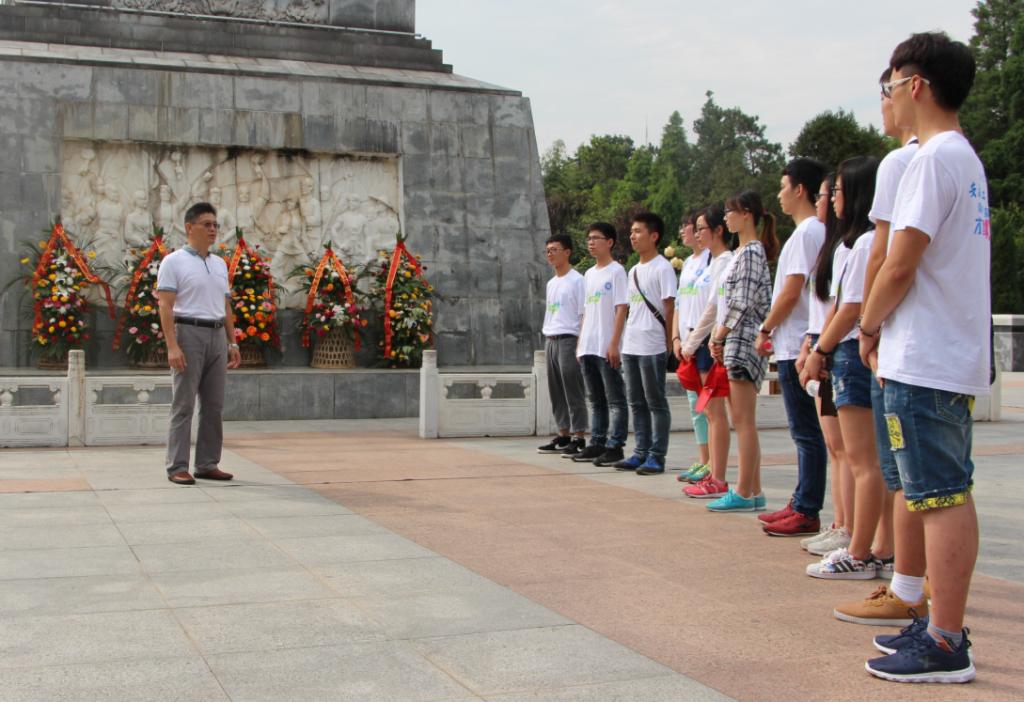 随后,成员们来到红军广场,瞻仰由刘伯承将军题词“燎原星火”的革命烈士纪念塔,迈着沉重的步伐拾级而上,为革命烈士敬献花篮,肃立默哀,并深鞠躬三次表达对革命先烈的崇敬之情 。在纪念塔前,徐冬生为大家进行了深刻的革命教育,他感慨今日生活的来之不易,提醒同学们勿忘革命历史,传承红色文化,坚定理想信念,继续弘扬革命先辈们的革命传统。接着,大家在红军纪念堂中重温入党誓词,铿锵有力的宣誓,表达了对党的忠诚和对烈士的崇高敬意。在洪学智碑前,同学们再次鞠躬,缅怀这位两次被授予上将称号的革命家。