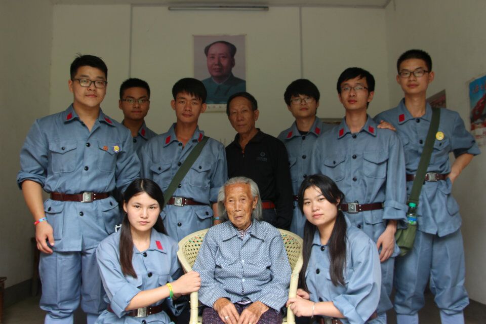 首先团队按照军事建制进行编班,分别被编到四连一班和二班,各班由班长带领来到井冈山茅坪乡坝上村的“老俵”家中。简短分工之后,炊事组农户家人事先准备好的食材、厨具、柴火等物品进行清点后,立刻投入到摘菜、切菜、生火、做饭、炒菜等工作中。调研组就地在该村庄其他几户人家就“群众路线新故事”等方面选课进行调研,在李小红阿姨家里,她跟我们讲述了“三大纪律,八项注意”背后的故事,让我们深刻了解到“不拿农户一个红薯”的深刻内涵。在老革命袁文才家里,外孙向我们讲述了父亲与毛泽东在井冈山时期的经历。袁文才的女儿已经95岁高龄,虽然还能走路,说话已不太方便,在我们临别之际,依然坚持把我们送出门外,挥手告别,直到我们走出很远,才肯回去。