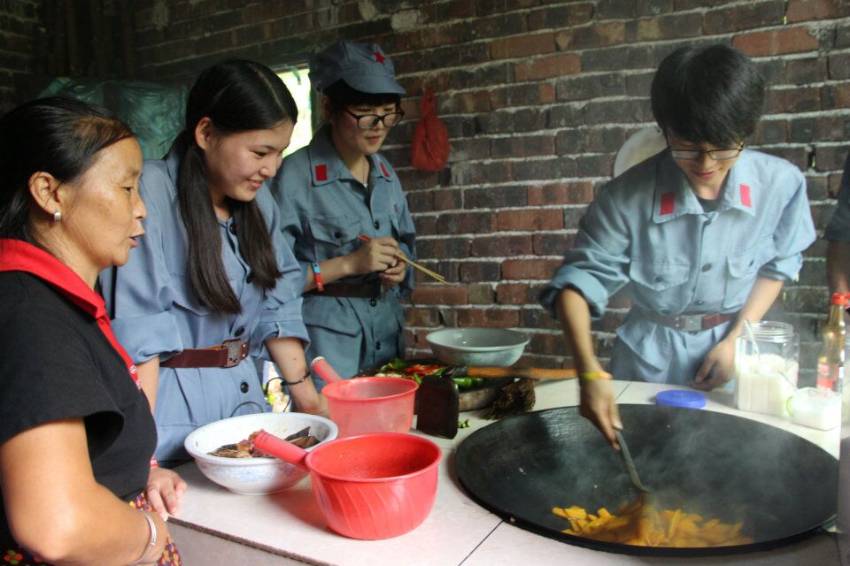 7月24日中午,学院赴井冈山实践团实践身着红军装、佩戴步枪,井冈山教育基地带班老师廖诗琴的带领下,走进井冈山农户家中自制红军餐,重温鱼水情;重走朱毛挑粮小道,体验革命艰辛之路。