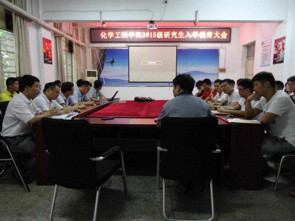 8月31日下午,化学工程学院在学院会议室召开2015级研究生入学教育大会,院长何杰、副院长刘锋、院党委副书记徐泽绵、各系主任与研究生新生参加了大会。