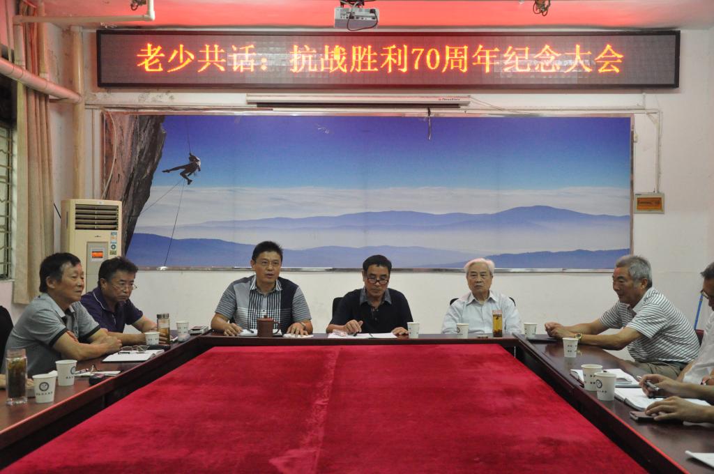 9月7日下午,校关工委老教师与化工学院青年师生齐聚一堂,学习习近平总书记在纪念中国人民抗日战争暨世界反法西斯战争胜利70周年大会上的重要讲话精神,热烈纪念抗战胜利70周年。校关工委常务副主任、原副校长李西才出席座谈会并致辞。化工学院党委书记、关工委主任徐冬生主持会议并讲话。校关工委部分老同志、化工学院老教师及青年学生代表共同参加交流。