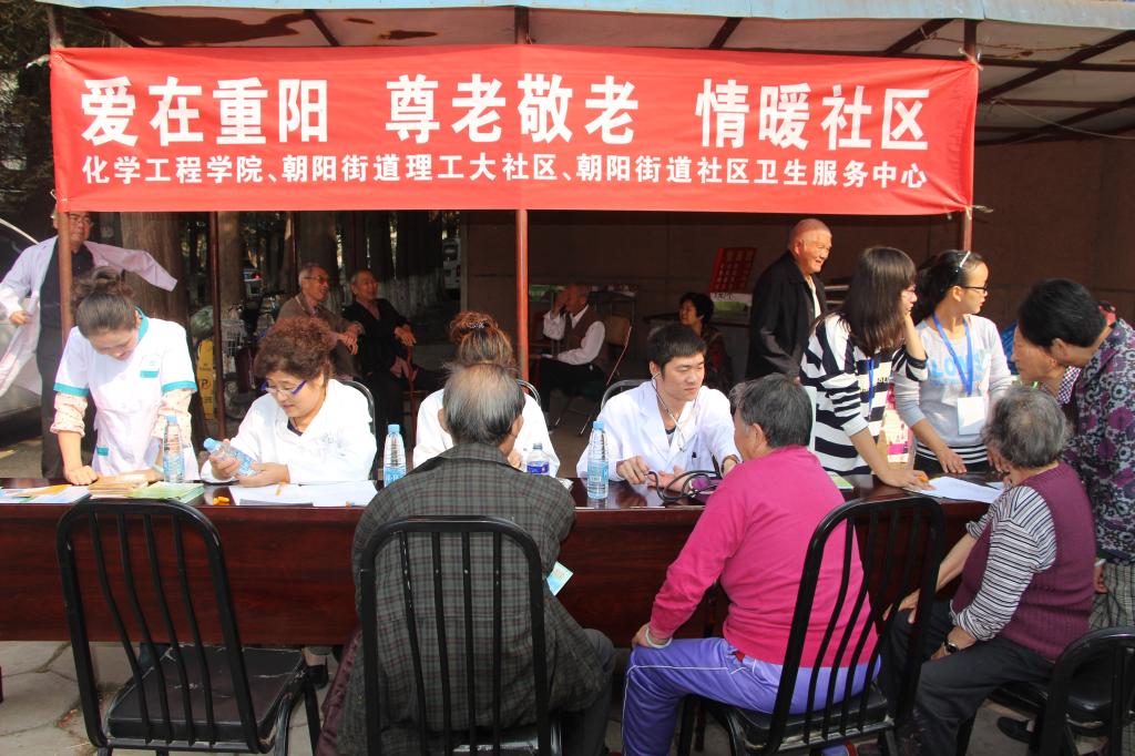 学院联合朝阳街道社区卫生服务中心,在社区内开展了以“爱在重阳 尊老爱老 情暖社区”为主题健康服务活动。志愿者们免费为社区老人测血糖血压,还向老人们发放健康知识传单,介绍营养保健知识。活动一直持续到中午11点,先后接待了近百位老人。“化学工程学院组织的这样的免费服务非常好,辖区老人们都十分高兴,非常感谢学生和医生的帮助。”一位刚测过心率的老人说。