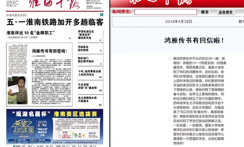 《淮河早报》对回信情况进行了报道