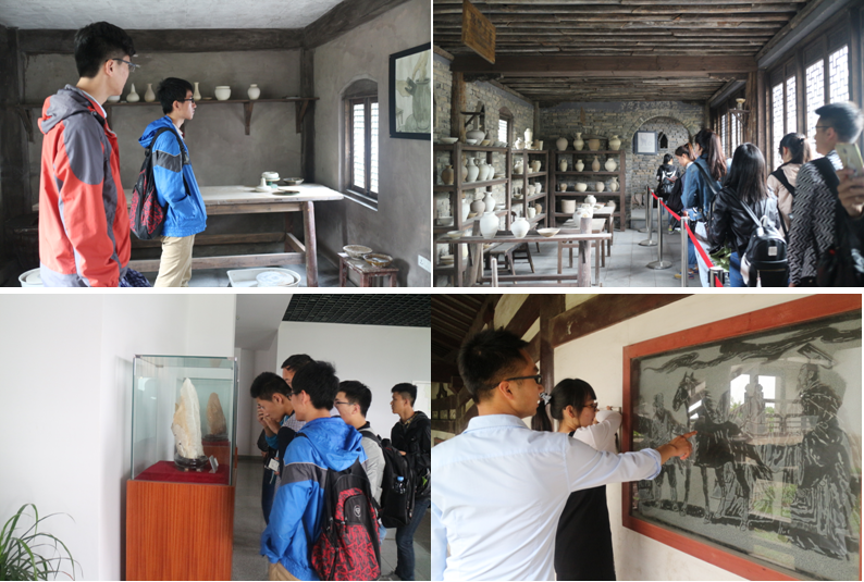 在天宝双遗园,宣讲营成员在讲解员的带领下,参观以“寿州窑”、“紫金砚”两个省级非物质文化遗产制作技艺的传承研究、创新发展、收藏展示为核心内容的人文景观,欣赏了隋代的青釉盘口瓶、唐代的黄釉四系大罐等古代真品以及方见尘、路福传等大师的作品。古寿州窑里复建着的老窑及生产、制作的场景,让大家领略到千年的窑瓷文化,感受到古代人民精湛的制作技艺。