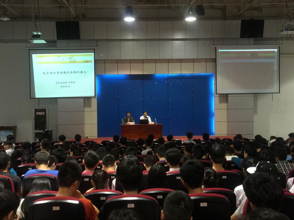 为进一步宣扬传统文化,提高学生国学素养,6月2日晚,校党委宣传部部长吴照明应化学工程学院邀请,在北校区图书馆二楼报告厅为2015级全体学生作了题为《孔子的仁学思想及其现代意义》的专题讲座。学院党委副书记徐泽绵及2015级辅导员聆听了讲座。