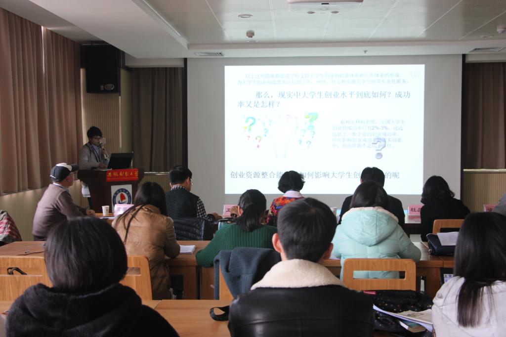会议分专题讲座、圆桌论坛、创业案例报告、专家点评、主题报告等五个环节。在创新创业教育圆桌论坛环节,杨志华以“暖阳爱老,公益创业”为题,从建立帮扶制度、开展调查研究、物质精神协同帮扶、老少双向帮扶、创业项目思路、市场前景、目前成果等方面详细介绍了暖阳爱老社区服务中心将关爱老人与公益创业相结合的思路和现实意义。论文汇报环节,蒋贺贺围绕论文主旨,就创业资源定义、创业资源分类、案例选取与研究过程、启示与局限等方面介绍了创业资源整合对创业项目选取与可持续发展的重要性。