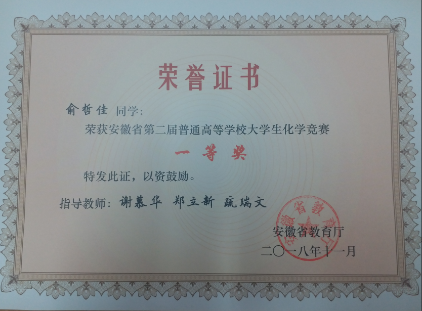 漫画柜 学子在安徽省第二届普通高等学校大学生化学竞赛中获佳绩