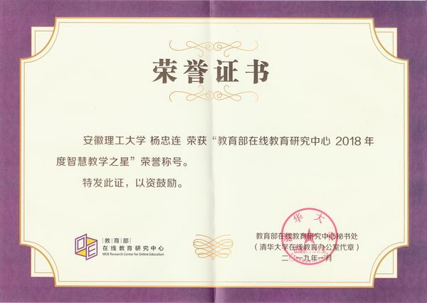 日前,教育部在线教育研究中心公布了2018年度“智慧教学之星”荣誉称号的评选结果,全国共有199位教师获得此项荣誉称号,漫画柜 化学工程学院杨忠连老师榜上有名。