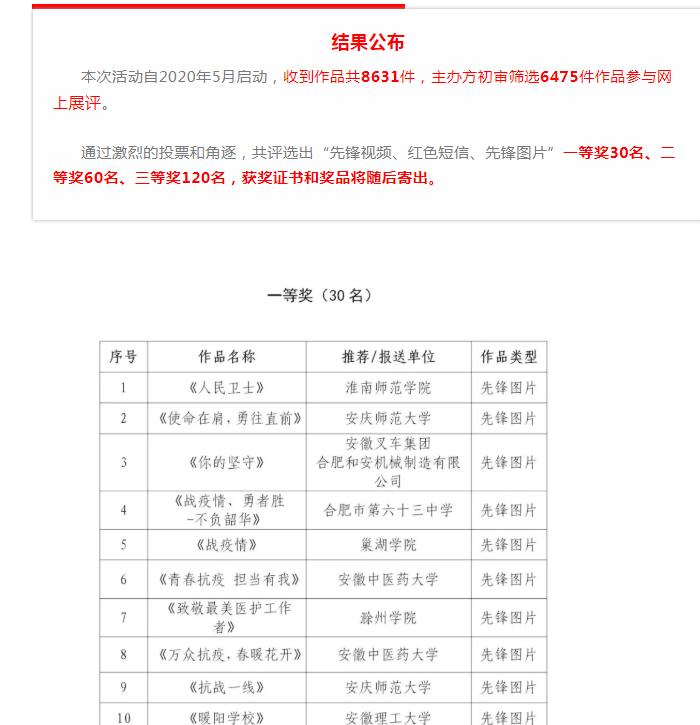 安徽省“青春,在奋斗中闪光”红色信息主题活动于8月28日成功落下帷幕。化工学院推送作品《暖阳学校》荣获一等奖。