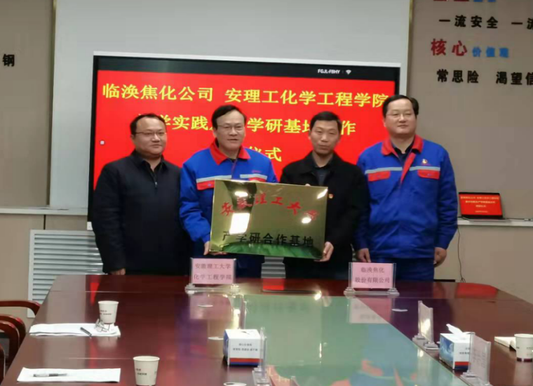汪泉与李治国签订了教学实践、产学研基地合作协议书,徐泽绵与刘凯共同为教学实践、产学研合作基地揭牌。按照合作协议,化工学院下一步将安排部分高年级本科生到临涣焦化股份有限公司进行实习。