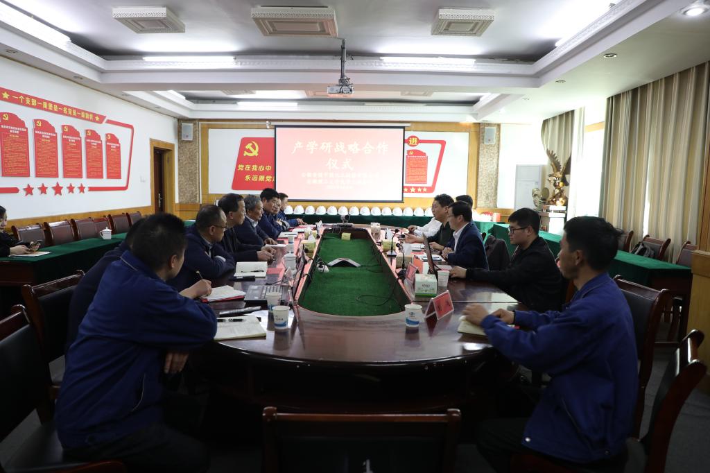 孟宪科首先介绍了公司的发展历史及多年来励精图治的发展变革。武成利简要介绍了学校和化学工程学院的发展历程、学科及特色专业、师资力量和煤炭清洁高效利用平台等,学院煤炭清洁高效利用团队负责人李寒旭介绍了团队建设情况及未来发展规划。双方领导就项目合作及企业急需服务的技术难题进行了广泛交流和探讨,并签署了产学研战略合作协议。