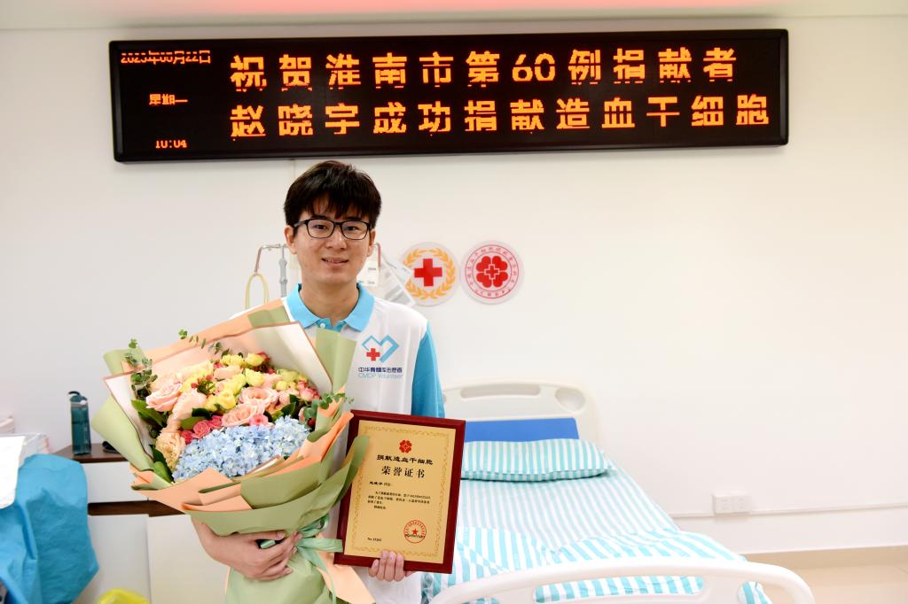 今年3月,在外地实习的赵晓宇接到捐献前体检通知后,第一时间赶回淮南,按照要求一步步做好相关工作,希望尽早能为小患者送去生命的火种。