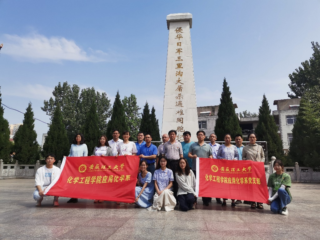 7月1日上午,为深入学习贯彻党的二十大精神,进一步增强全体党员的党性修养,缅怀革命先烈,化学工程学院化学工程系党支部、应用化学系党支部和本科生一支部以支部联合、师生共建方式,赴淮南市凤台县三里沟红色教育基地,联合开展“迎七一、忆初心”主题党日活动。学院党委副书记、副院长(主持工作)武成利作为支部党员参加活动。