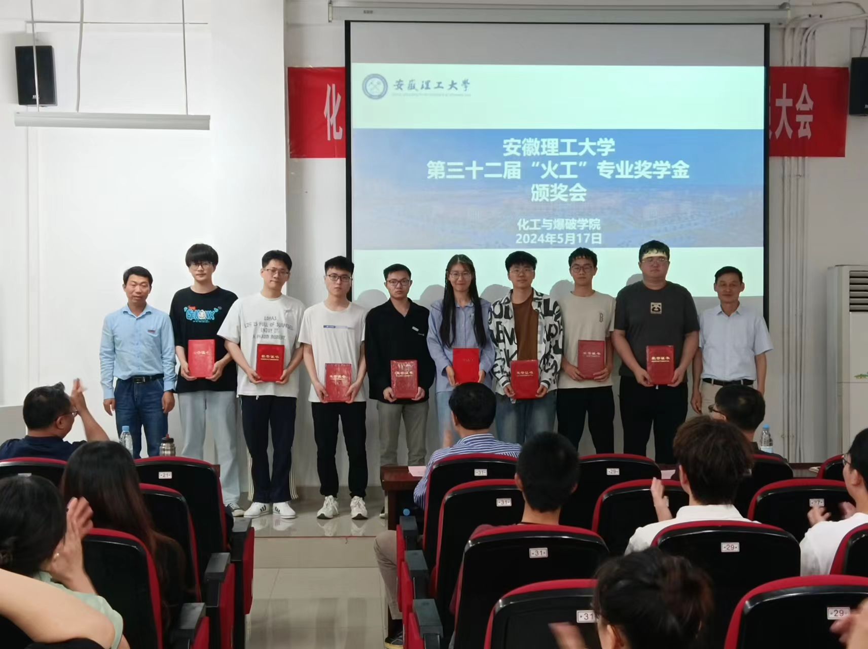 5月17日下午,第32届“火工”专业奖学金颁奖会在崇礼楼东102举行,学院党委书记徐泽绵,党委副书记、副院长(主持工作)汪泉,副院长胡劲松,校友代表南京理工大学解立峰教授及师生代表100余人参加活动,颁奖会由学院党委副书记曹秀军主持。