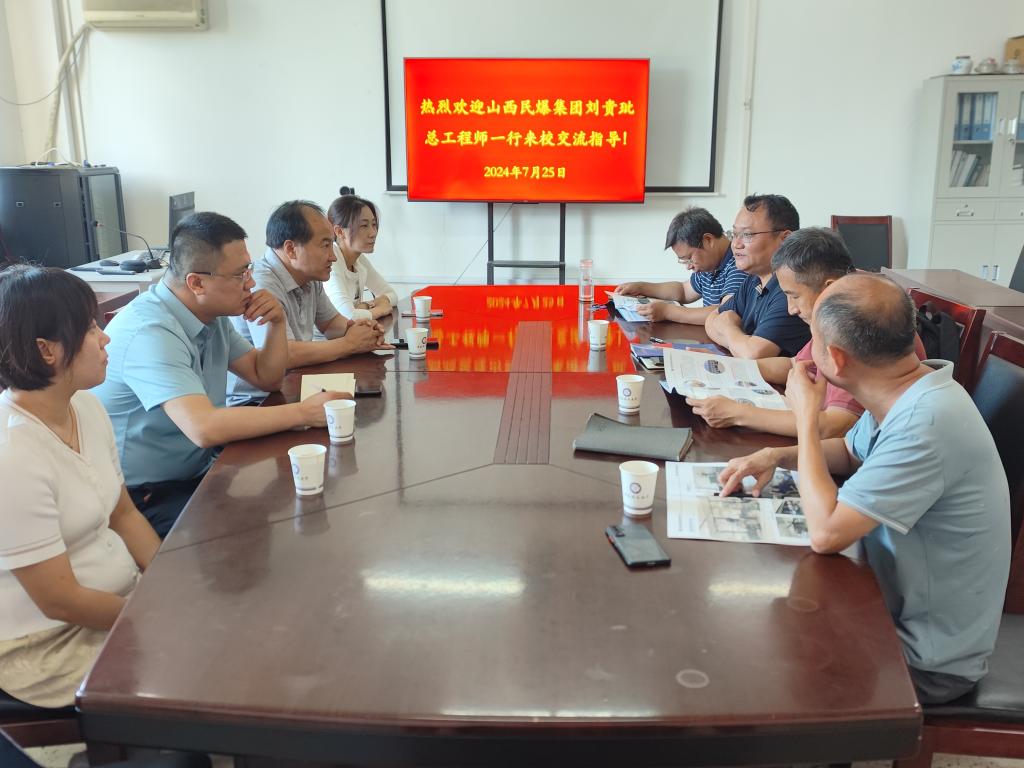 7月25日上午,山西省民爆集团有限公司总工程师刘贵玭一行4人来漫画柜 开展校企合作交流。学院党委副书记、副院长(主持工作)汪泉、爆炸科学与工程系负责人以及部分专业教师参加了交流活动。