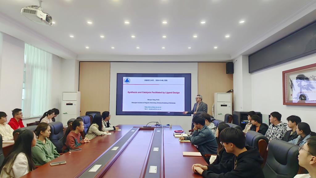 11月8日,应漫画柜 邀请,中科院上海有机化学研究所汤文军教授在崇礼楼东103报告厅作了题为《高效催化促进药物绿色制造》的学术报告。院党委副书记、副院长(主持工作)汪泉、相关专业教师及研究生50余人参加了报告会,学院副院长胡劲松主持本次会议。