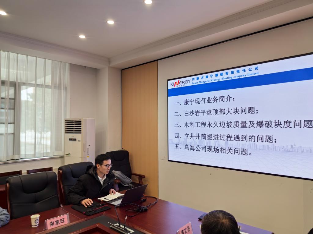 内蒙古康宁爆破有限责任公司技术中心主任宋家旺汇报了公司项目进展,提炼出若干关键技术难题。与会专家及老师热烈讨论,积极贡献智慧,提出宝贵建议,共同寻求解决方案。