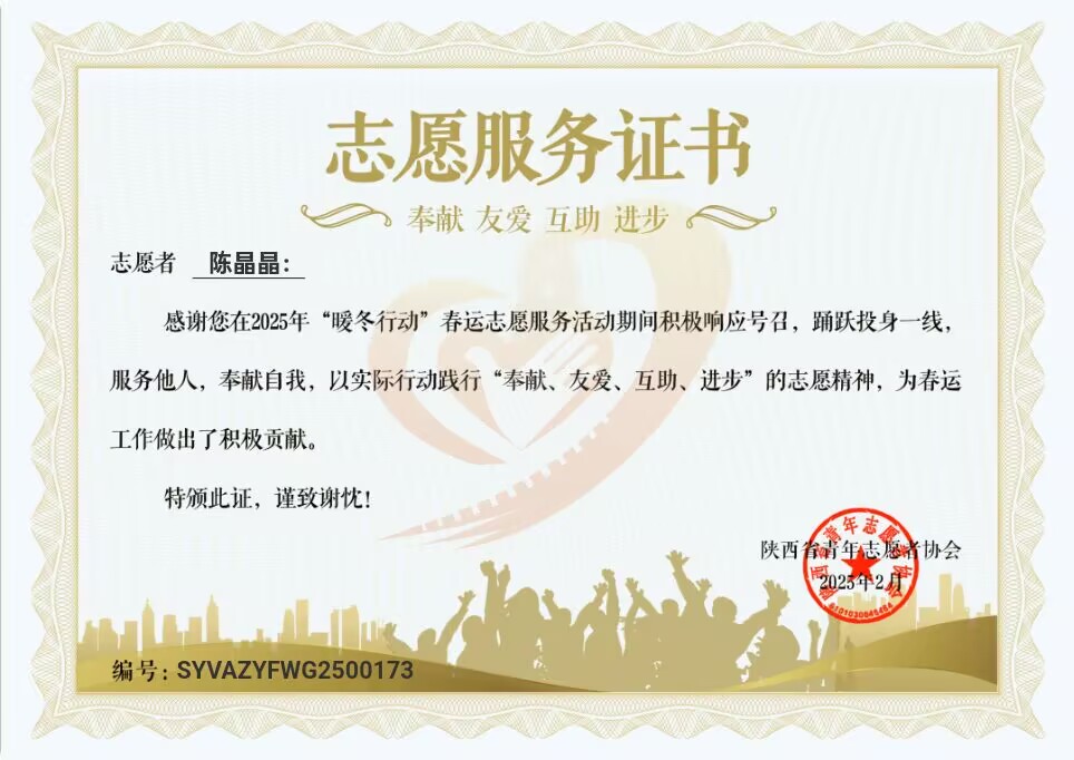 春节期间,学院组织化工24-3班陈晶晶、应化24-2班高梦瑶、能化23-1班秦智贤等多名志愿者,奔赴家乡火车站、高铁站、长途汽车站等重要交通枢纽,在当地交管人员的指导下,认真开展“青春志愿行,温暖回家路”的春运“暖冬行动”服务活动。在现场,同学们积极协助,维持秩序,克服了严寒天气坚守岗位,细致耐心,引导旅客、搬运行李、智慧购票,用热情周到的服务温暖每一位旅客回家的路。各地组织部门和志愿者协会给学院发放表扬信或实践证书,表彰学生用实际行动诠释了“奉献、友爱、互助、进步”的志愿精神,展现出了新时代大学生的精神风貌。