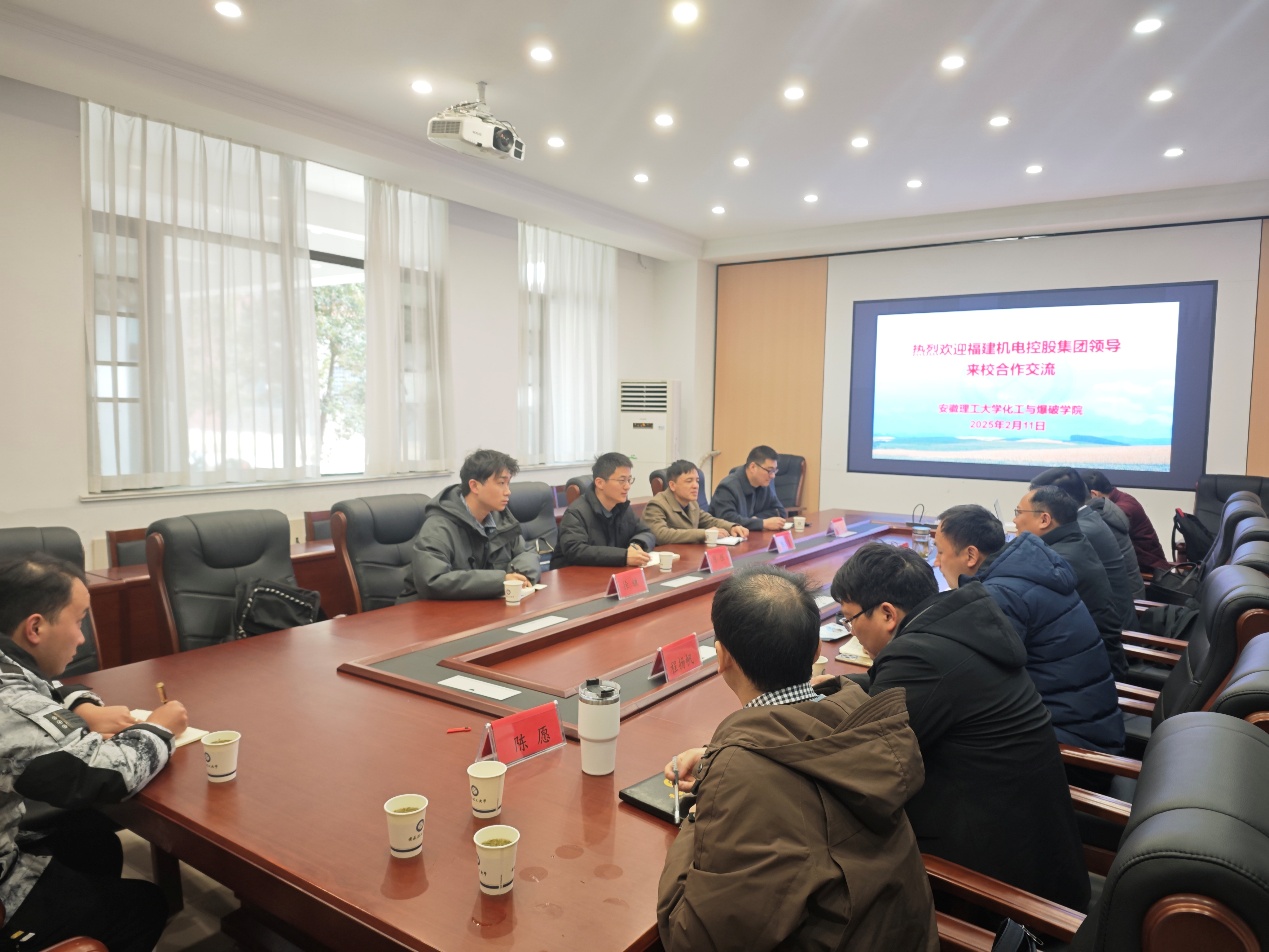 2月11日,福建机电(控股)集团发展规划部副总经理陈恒、技术部经理陈志贵一行来漫画柜 调研并开展合作交流。院长汪泉、院党委副书记(主持工作)刘瑞等领导班子成员以及爆炸科学与工程系部分专业教师参加了交流活动。