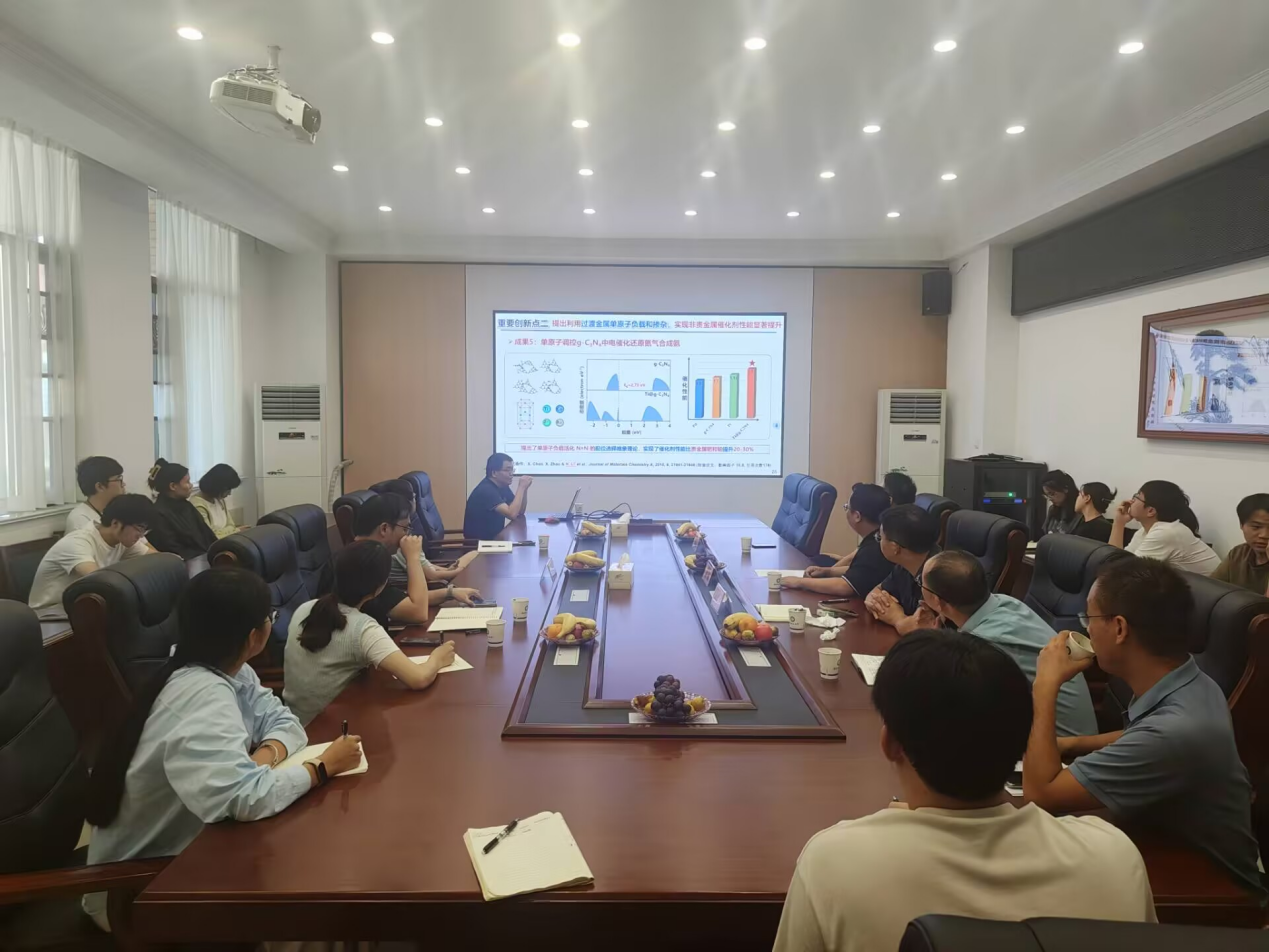 李能教授面向国民经济重要行业“双碳”目标、国防高端装备制造与国家能源安全等重大战略,聚焦非贵金属催化剂催化活性低与稳定性差等关键科学问题,基于对贵金属催化剂特性的深入解析,创新性地提出了“仿贵金属催化剂”设计理论,突破了表界面非均一化构筑与电子能态调控关键技术,建立了异质结“中间能级-内建电场-分级跃迁”三位一体调控新机制和“异质结应力缓释”新理论,为贵金属催化剂减量化替代提供支撑。互动交流环节,李能教授围绕电子跃迁机制在异质催化剂设计中的应用、模型建立如何精准反映原子掺杂对催化性能影响、热催化与电催化原理差异等问题,与师生深度探讨,助力师生把握催化领域前沿科研思路。
