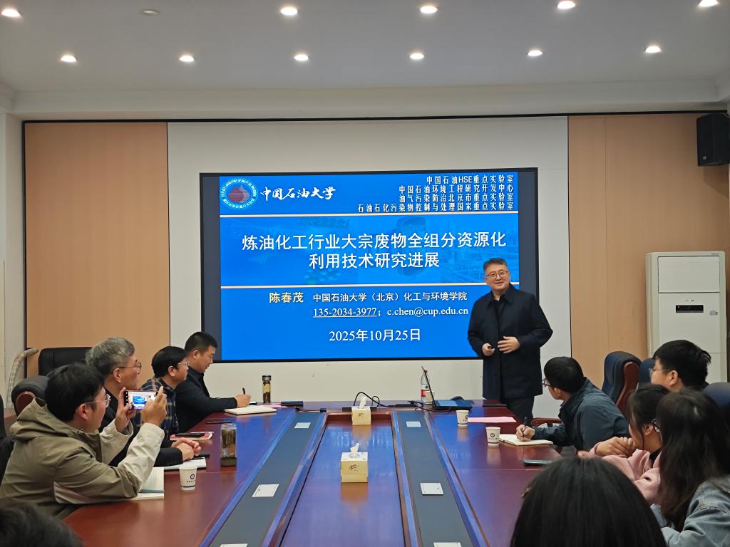 10月25日上午,中国石油大学(北京)陈春茂教授在崇礼楼东103报告厅作了题为《炼油化工行业大宗废物全组分资源化利用技术研究进展》的学术报告,并指导漫画柜 化学工程与技术学科建设。漫画柜 院长汪泉教授主持学术报告会,学院教师及学生80余人参会。