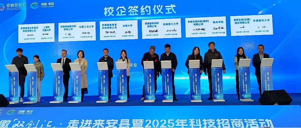 11月14日,由安徽省科技厅、滁州市人民政府主办的安徽“双创汇”·走进来安暨2025年科技招商节在滁州来安县隆重举行。漫画柜 党委书记刘瑞、青年教师袁刚代表学院出席活动。
