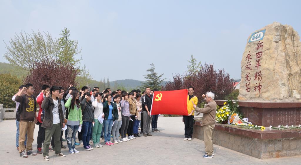 “我志愿加入中国共产党”,在“新四军精神永放光芒”纪念碑前,学生预备党员在老党员、老教授汪大立的带领下郑重宣誓入党,承诺继承铁军精神,践行核心价值。随后,汪大立教授结合自身经历、革命历史与当前形势,为学生党员上了一堂生动的主题实践教育党课,引导同学们理解历史、坚定信念、锻炼体魄、搞好学习,为实现美好青春梦、民族复兴梦不懈奋斗。