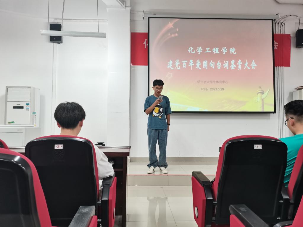 为了庆祝建党100周年,感悟革命先辈的家国情怀。化工学院于5月29日下午六点半在崇礼楼102报告厅举办以“岁月易流转,党魂永存心”为主题的建党百年爱国台词鉴赏大会。