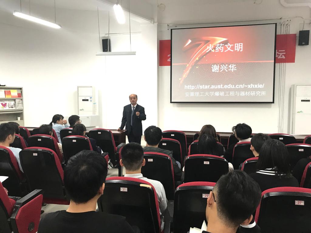 1022日晚,校第五期“青马精英训练营”在崇礼楼102会议室开展专题讲座——火药文明。化工学院团委书记高圣涛主持,谢兴华教授主讲。