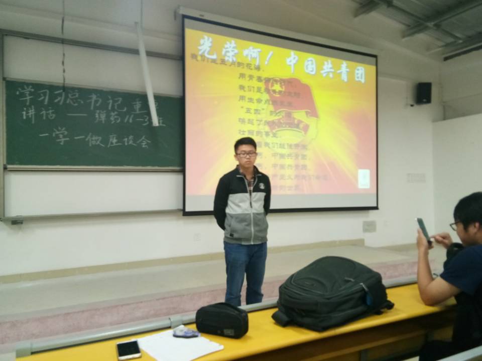 为了响应习近平总书记号召,紧跟化工学院“一学一做”队伍,4月17晚,弹药16-3团支部全体成员在天工北516教室开展了“学习习近平总书记讲话,做优秀共青团员”主题班会,此次会议由团支书高磊主持。