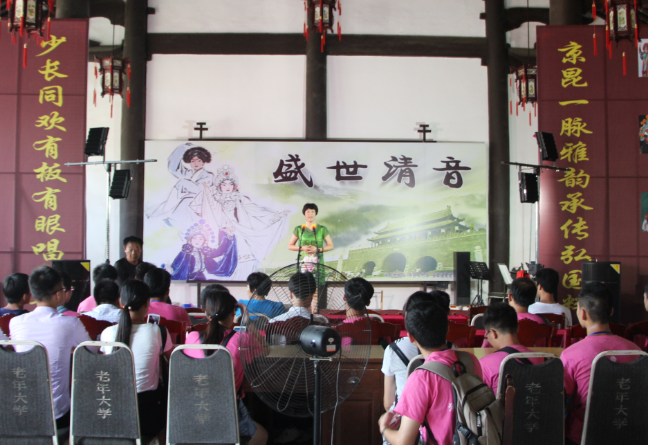 在孔庙,调研团集体向教育先祖孔子雕像鞠躬致敬,并受邀观看了当地老年艺术团的戏曲表演,同时展开了“暖阳爱老”志愿服务活动,向老人分发水果和矿泉水,向老人讲解夏日养生技巧,受到老年人的一致好评