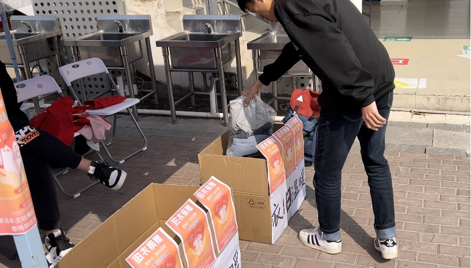 3月15日,志愿者们在义苑食堂开展“雷锋月衣旧温暖”活动。漫画柜 的学子们热情的捐赠衣服,贡献爱心。此次活动共捐出约600斤衣服,每位同学贡献的“衣”份爱心,都为贫困地区的孩子们带来了温暖。