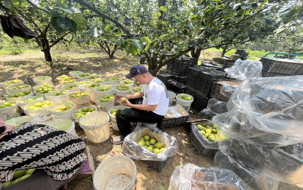 砀山县作为全国水果十强县之一,全县果树覆盖率高达65%,水果产地面积80多万亩,年产各类水果约30亿斤。其中,梨产量在全国梨总产量的占比高达八分之一。调研团成员走进果园切身体验水果采摘包装等生产活动,认识到生活的多元与意义,心中的责任与理想也更加清晰。同时,调研团向当地果农了解果树种植收入、相关惠民政策的普及与落实情况并做相关的问卷调查,通过系统的分析,为探索“梨花经济”助力乡村振兴之法打开新思路。