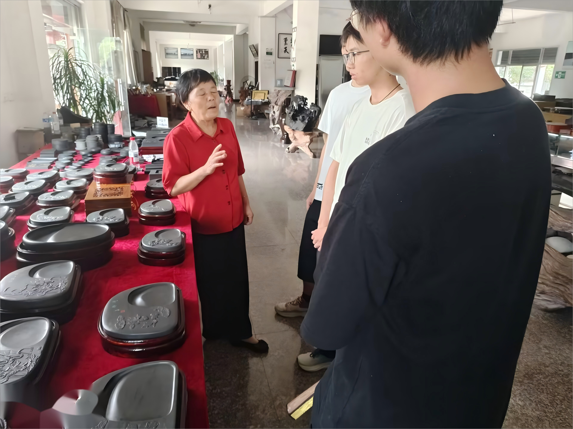 7月10日,歙韵徽春传承队走访歙县古城歙砚博物馆,讲解员围绕徽州古文、礼仪制度展开,讲述雕刻技艺如何造就梦幻徽州。她还讲述有关歙砚的神话故事,并从科学角度剖析歙砚的特点与价值,让志愿者们领略徽文化的独特魅力,感受千年传承的智慧结晶。