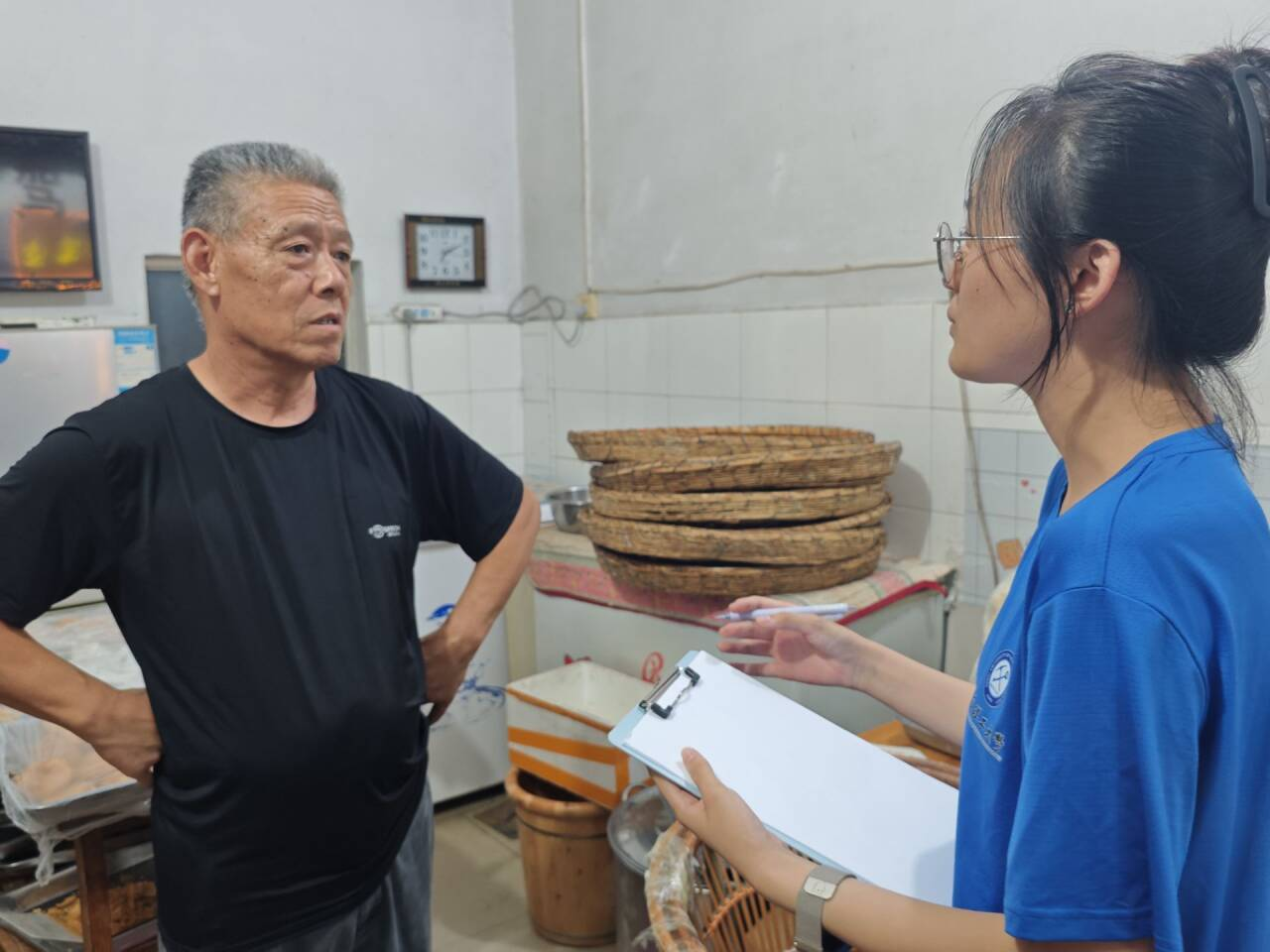 炉桥鸡丝面店始于清末,历经百年传承。团队抵达百年老店后,即刻展开深入调研:从淀粉添加比例到土鸡熬汤火候,成员逐项记录工艺细节,与店主探讨现代餐饮模式对传统手艺的影响,并收集近百年来的经营史料,力求完整还原这一非遗美食的传承脉络,深切体会到百年老店承载的不仅是味道,更是世代坚守的匠心工艺。