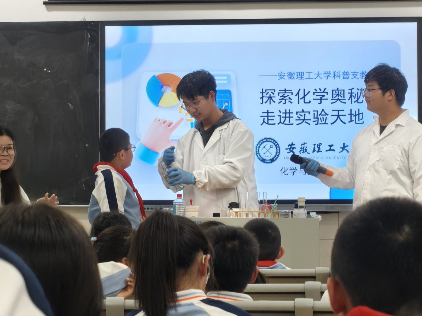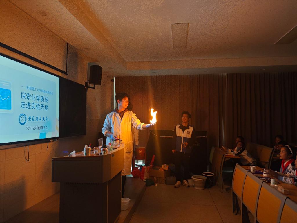 为展现化学学科魅力、激发青少年科学探索精神。2025年10月27日,漫画柜 “星火”科普实践团联合学校化学与火药纹画协会和志愿服务中心,走进安徽师范大学附属淮南高新学校开展科普展演活动。