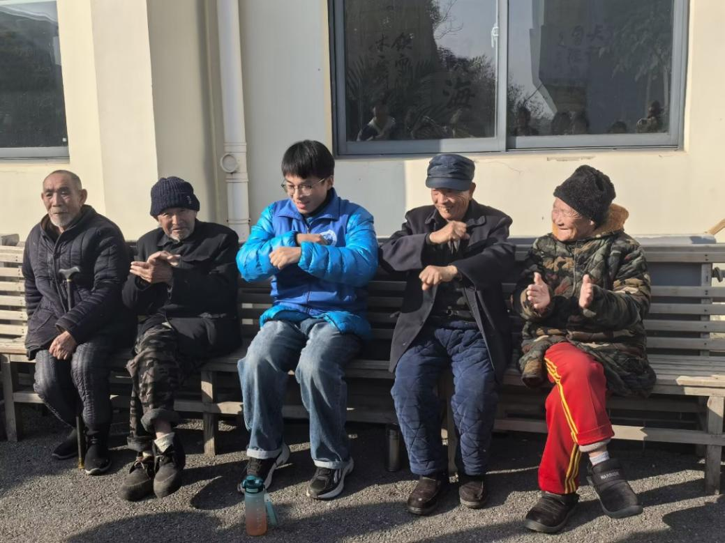 随后,志愿者带领老人一起学习拍手舞。随着音乐响起,老人们跟着志愿者抬手、画圈,动作虽缓却充满轻松愉悦。