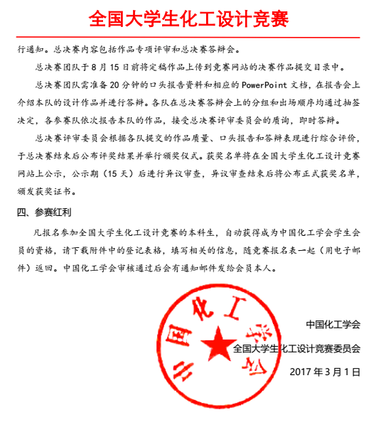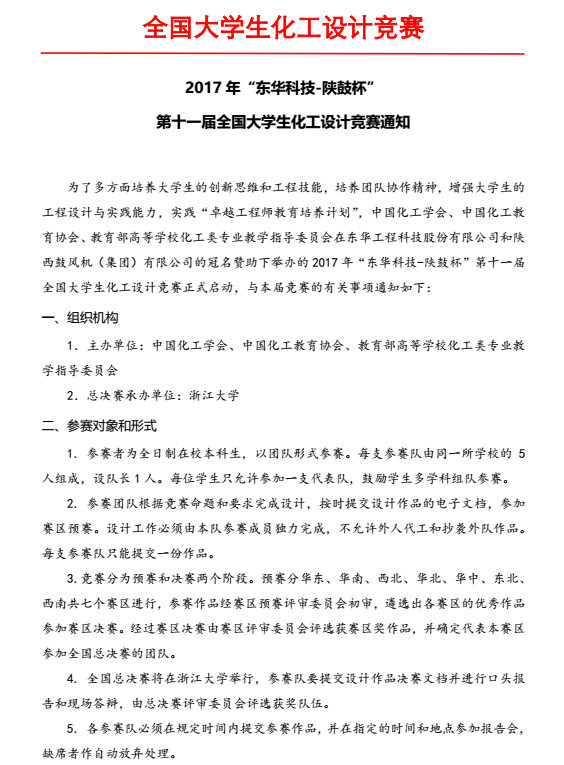 2017年“东华科技-陕鼓杯”第十一届全国大学生化工设计竞赛通知