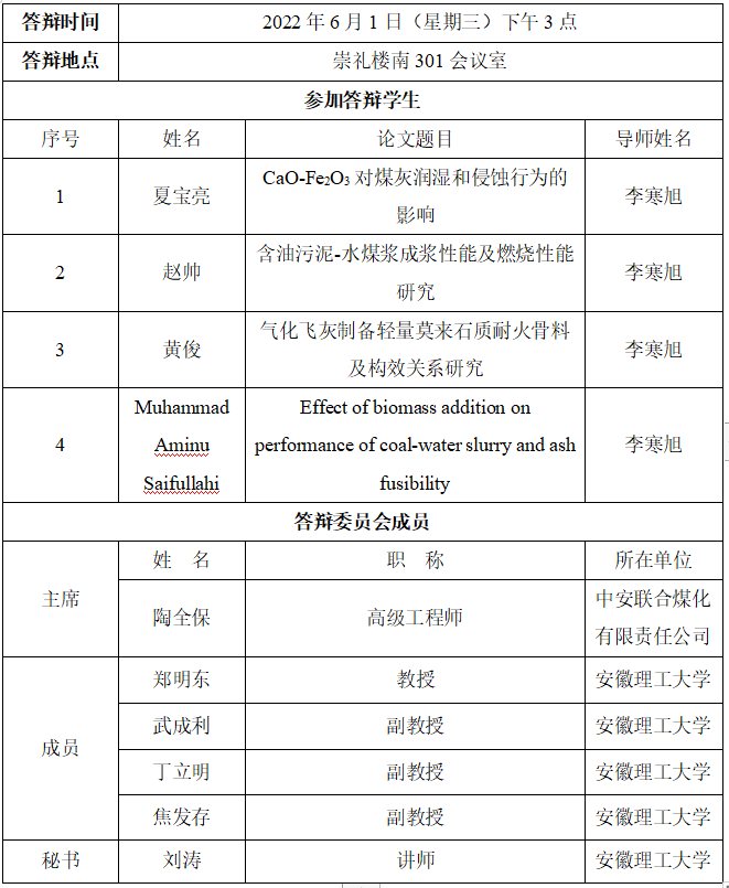化学工程学院硕士研究生学位论文答辩公告(三)
