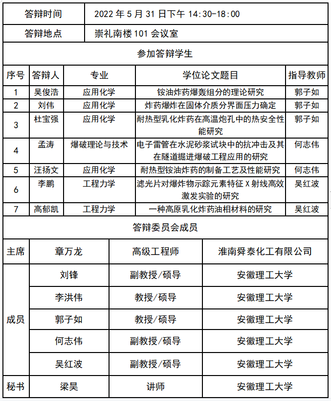 化学工程学院硕士研究生学位论文答辩公告(六)