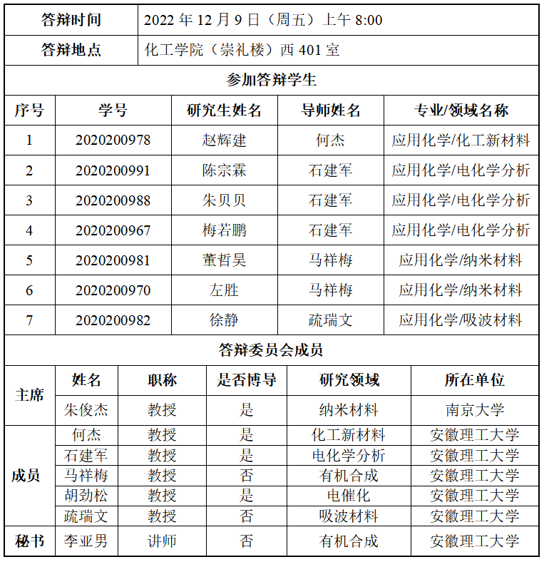 化学工程学院硕士研究生学位论文答辩公告(七)